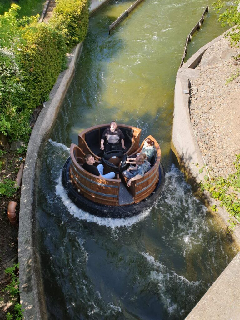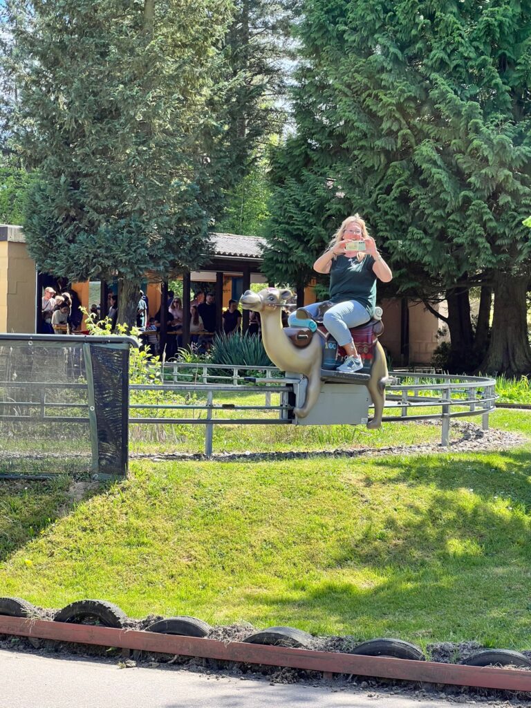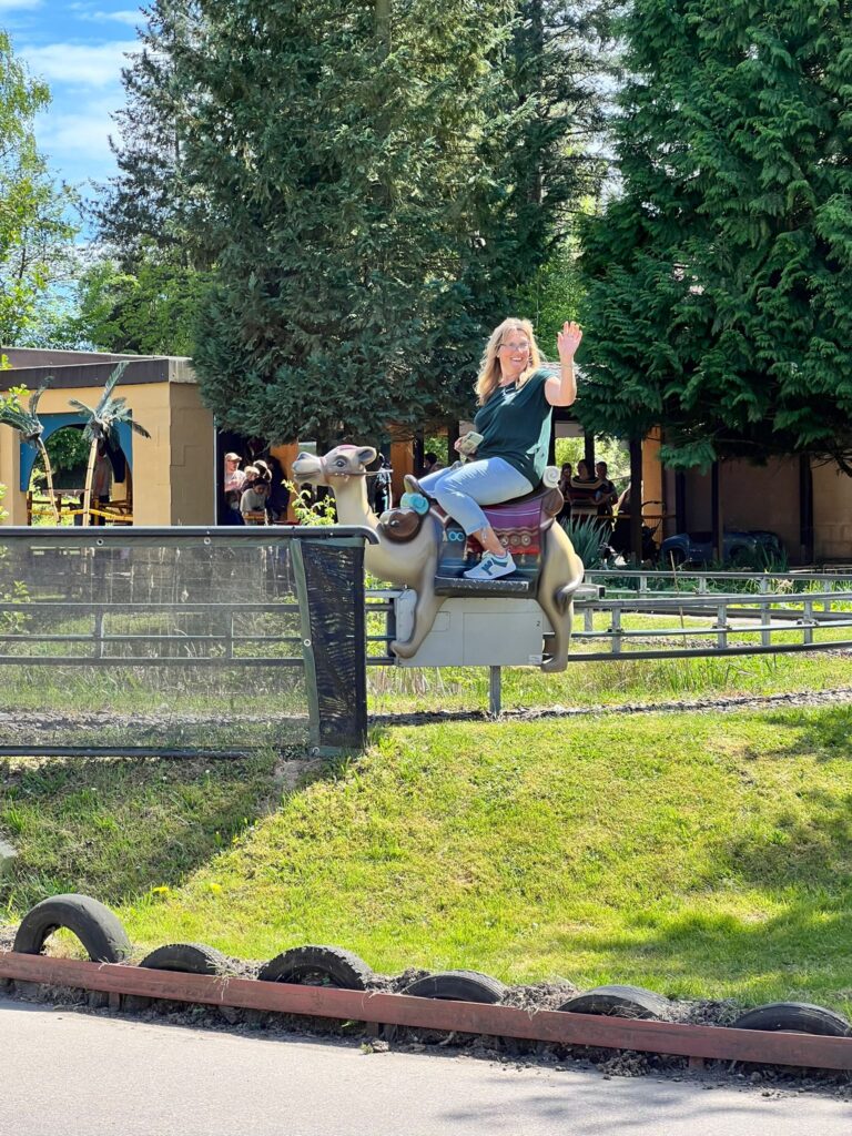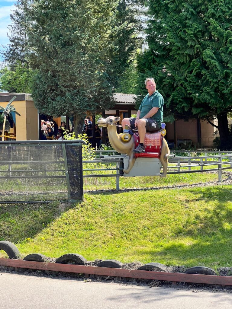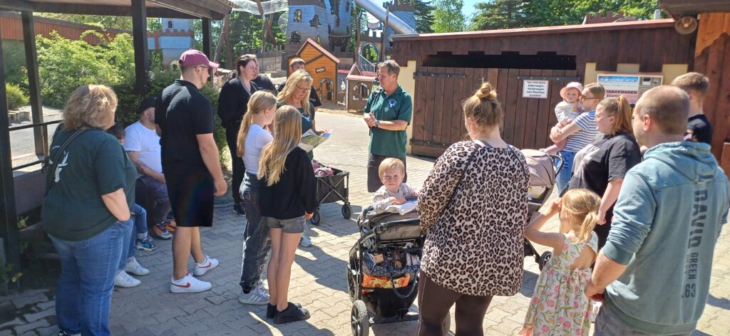 Schon am Vormittag stürzten sich die Mutigen unter uns auf die Achterbahn und das Rafting im „Reich des T-Rex“. Andere erkundeten mit den Kleinsten die elektrische Kamelreitbahn, das nostalgische Ballonkarussell oder die Afrika-Fotosafari. Die detailreich gestalteten Themenbereiche und die familienfreundliche Atmosphäre sorgten überall für leuchtende Augen und ausgelassene Stimmung.