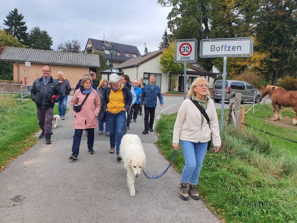 Bei mildem Herbstwetter und bester Stimmung startete der Sollingverein Boffzen am Samstagnachmittag, 11. Oktober 2025, zu seiner traditionellen Herbstwanderung. Mehr als 17 Wanderfreundinnen und -freunde hatten sich an der Evangelischen Kirche in Boffzen eingefunden, um gemeinsam die rund fünf Kilometer lange Strecke zum Eulenkrug zu bewältigen.